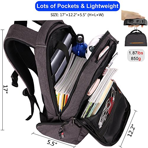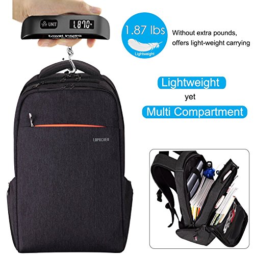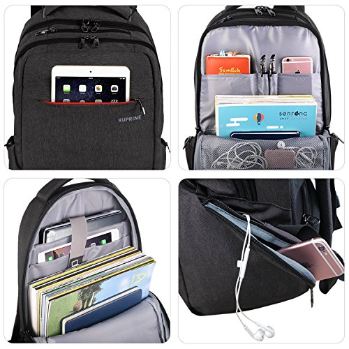 Studio : Kuprine Publisher : Kuprine Product Description Kuprine Lightweight Business Travel Laptop Backpack for Men 15.6 Laptop Computer Backpack and Bags Specification: Dimension:7.5¡±x12.6¡±x18.9¡±(LxWxH) Item weight:1.87 pounds Material:Made of water resistant,shockproof and ultralight senior suit fabrics. -Integrated breathable mesh pad in the back,breathable and not muggy. -Comfortable padded shoulder straps,nicely distribute the weight,relax your shoulder.. -Convenient headset grommet for easy access to your MP3 player. -The pad is not only to protect the laptop but it helps the backpack maintain its shape -Pefect for college,school,business,travel,work,hiking,camping. How to maintain the backpack?? - Wash it with clean water in ordinary temperature. - Do not wash it with hot water and alkaline detergent. - Hang to dry and store in ventilated place instead of sun exposure. - Wash Separately to avoid staining. 0