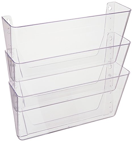 Deflecto DocuPocket, Wall File Organizer, Stackable, Letter Size, Clear, Set of 3, 13"W x 7"H x 4"D