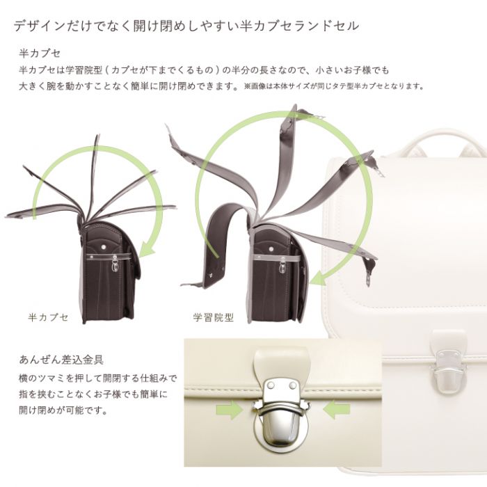 원본상품명: 送料無料☆2018年新型モデル☆?型半カブセタイプ☆持ち手付クラリ?ノFランドセル☆3色展開男の子 女の子 A4フラットファイル?? 半かぶせ 日本製
