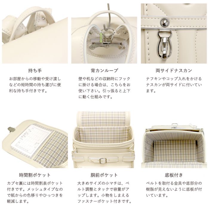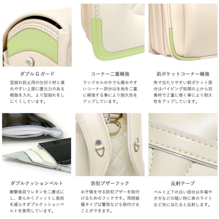 ◎란도세루(초등학생이 어깨에 매는 가방)의 양싸이드에는 나스카《》가 붙어 편리,그리고 양방의 어깨 벨트에는 방범 buzzer 등이 매어 달리는 D캔부.게다가(더구나) 이D캔에게 사용 하고 있는 후크와 란도세루(초등학생이 어깨에 매는 가방)량 싸이드 상부의 후크는 야간에 차의 라이트 등에서 반사하는 반사 대갈못이 되고 있습니다.또한란도세루(초등학생이 어깨에 매는 가방) 중앙의 대부분으로도 반사 테이프를 사용♪♪