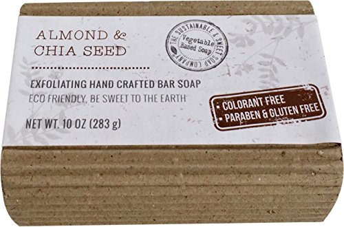 This ideal sized 10 ounce bar soap gently exfoliates with chia seeds which gently slough away dry skin
