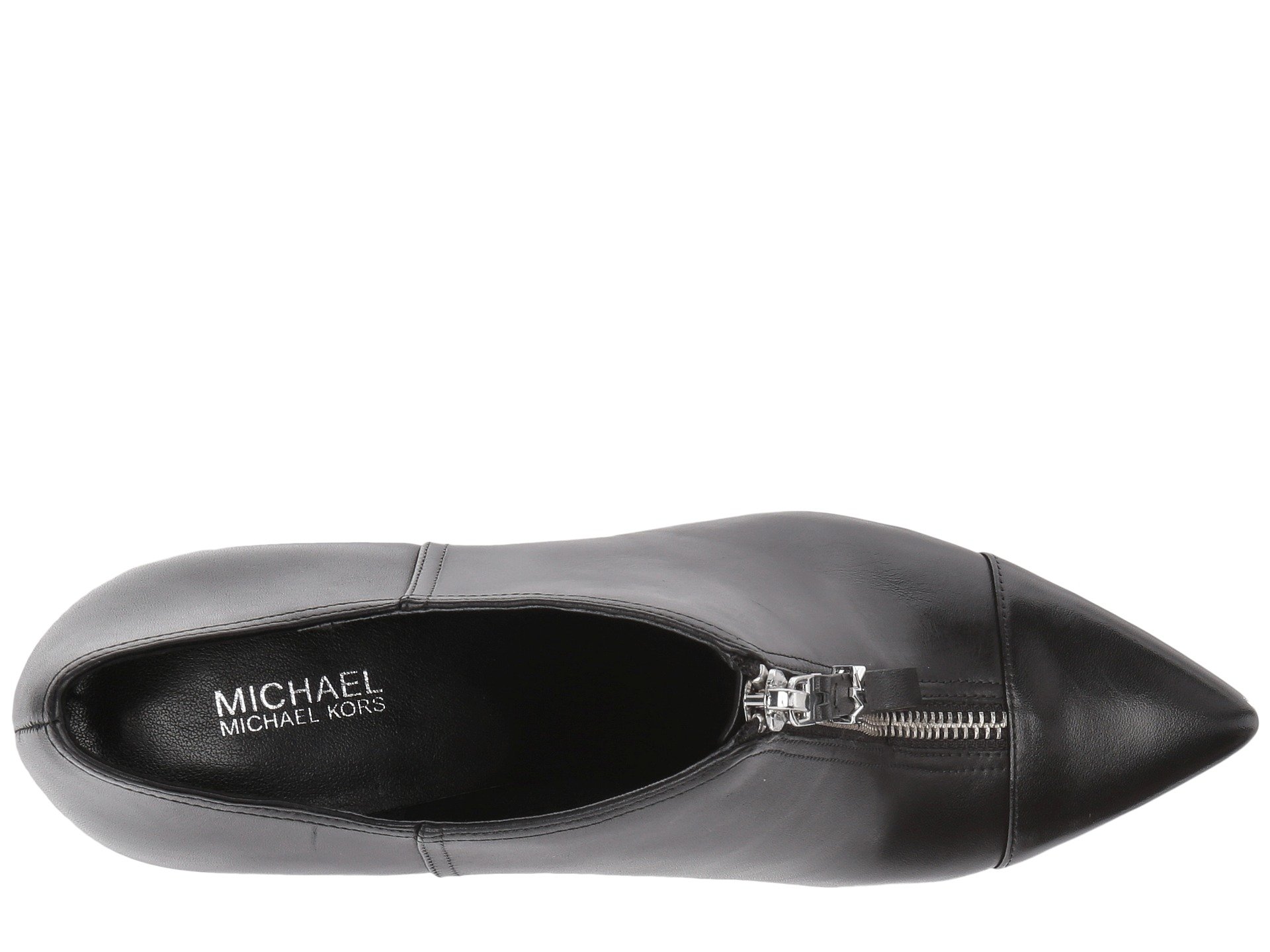 | Product Information SKU: #8940022The MICHAEL Michael Kors? Andi Bootie adds vintage edge that will easily complement your modern look!Vachetta leather upper.Front zip closure for easy on and off.Textile lining and footbed.Point-toe silhouette.Stacked stiletto heel.Synthetic outsole.Imported.Product measurements were taken using size 8, width M. Please note that measurements may vary by size.Weight of footwear is based on a single item, not a pair.Measurements: Heel Height: 3 1?2 in Weight: 9 oz |