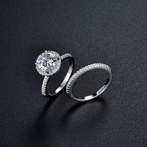 -. Title : Halo Rings Set CZ Cubic Zirconia Simulated Diamond Sterling Silver Solitaire Rings Band Ring Size 6-9