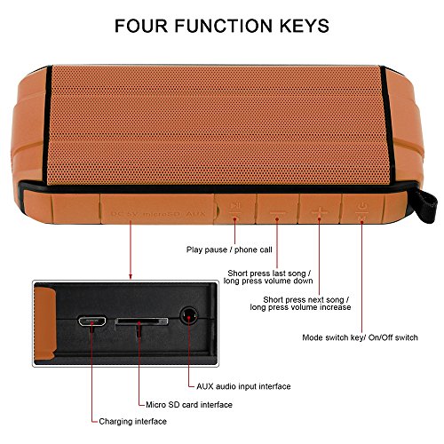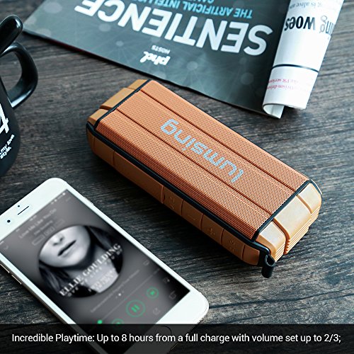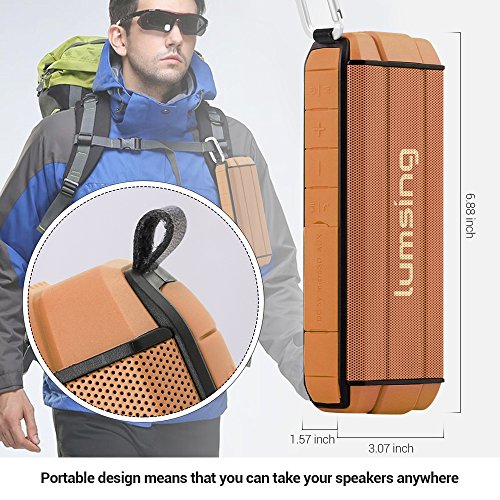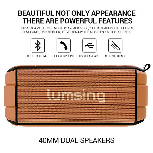 Studio : Lumsing Publisher : Lumsing Binding : Electronics Product Description Audio Format: MP3, WMA, AAC, M4A, OGG, APR, FLAC etc. Bluetooth version: V4.0 DER A2DP Stereo Audio Working distance: 50 feet (without barrier) Speaker: 40mm dedicated HiFi speaker unit Output Power: 4A 5W x 2 SNR ratio: ?80dB Power Input: DC 5V/1A Battery Capacity: 2000mAh rechargeable Lithium Battery Play time: 12 hours with full battery Size: 6.98 x 1.57 x 3.07 inches Weight: 10.6oz Material: ABS engineering plastic TPU plastic Warranty: 12-month manufacturer's warranty.