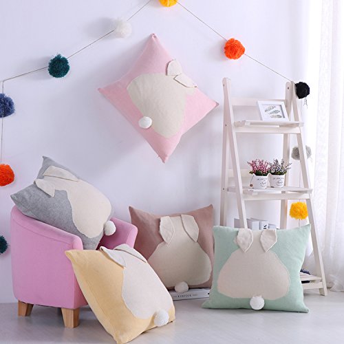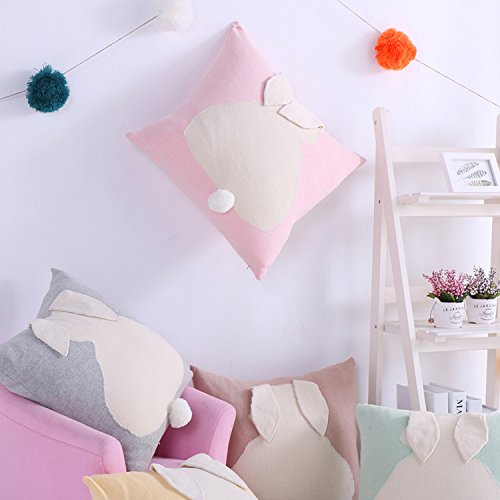 Fashion Cute Bunny Decorative Pillow Covers,Rabbit Cartoon Pattern Throw Pillow Covers Cushions For Sofa Bed Car (Pink)