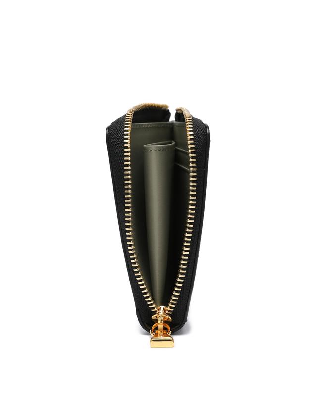 엠보 패턴으로 세련된 가죽 질감이 돋보이며 골드 컬러의 로고 장식으로 포인트를 준 반지갑입니다.