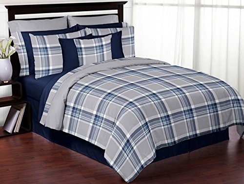 Sweet Jojo Designs Navy Blue and Gray Plaid Collection Window Valance