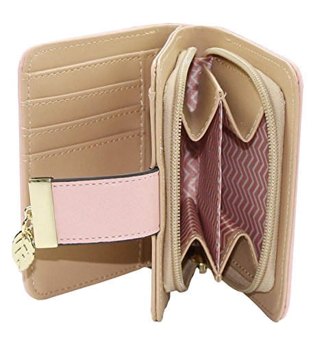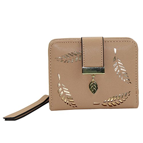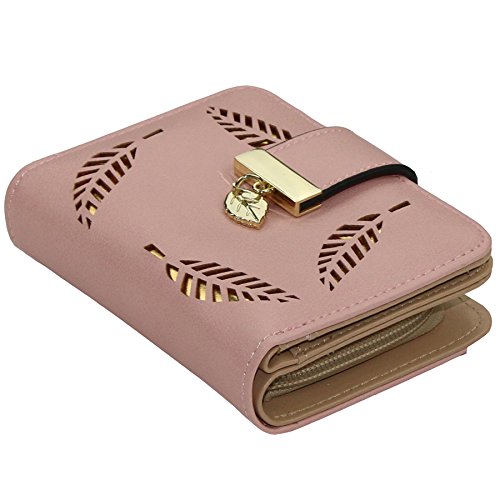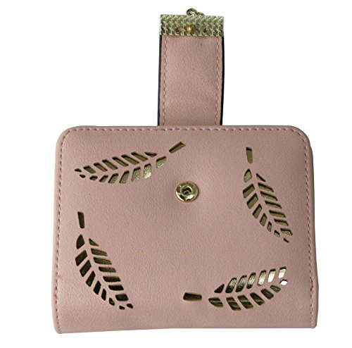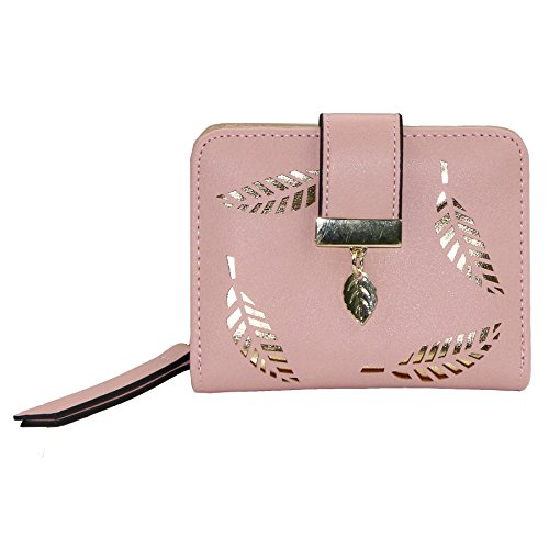 ETIAL Women's Soft Leather Cut-Out Leaf Short Bifold Wallet Coin Purse Pink