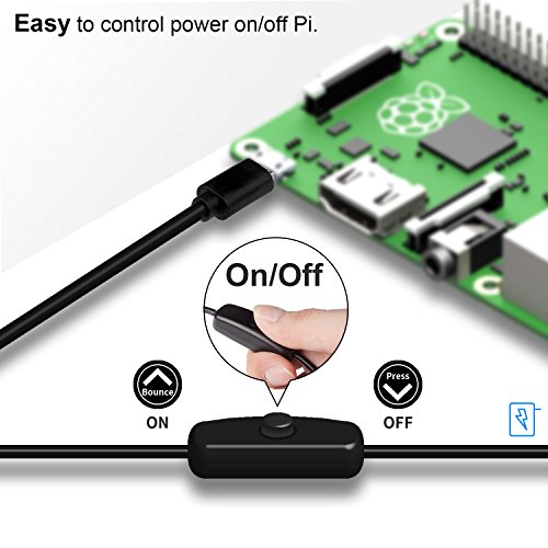 Enough power (2.5A) + 59 inch Micro USB cord with on/off switch for Raspberry pi : Power Adapter meets pi 3b 2b power expectation and avoid the pi reboot by insufficient power supply. USB cable is Long enough and conveniently turn your Pi on/off.