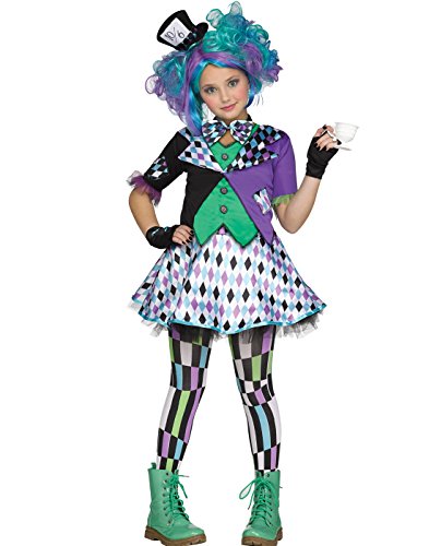 -. Brand : Fun World -. Color : Purple -. Department : girls -. Feature : Available in Sizes: Medium, Large and XL / Item Includes: Dress, Glovelets, Footless Tights and Hat. / Pictured items not included: Wig or Shoes / Material: Dress 100% Polyester Exclusive of Decoration; Tights 95% Polyester, 5% Spandex -. Label : Fun World -. Manufacturer : Fun World -. MPN : 115492 -. PackageQuantity : 1 -. PartNumber : 115492 -. ProductGroup : Apparel -. ProductTypeName : APPAREL -. Publisher : Fun World -. Studio : Fun World -. Title : Girls Mad Hatter Kids Costume