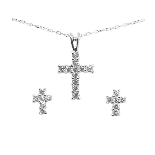 -. Title : Childrens Cross Cubic Zirconia Sterling Silver Earrings and Necklace Set