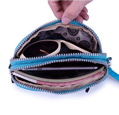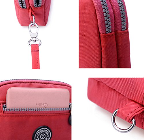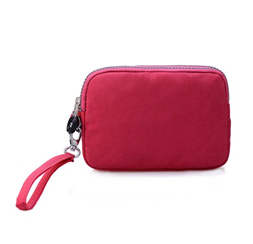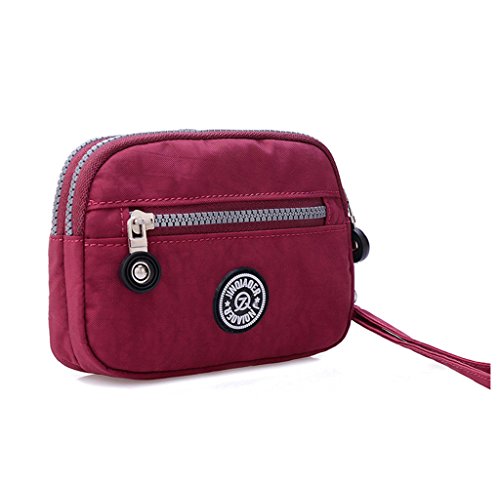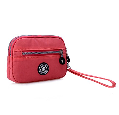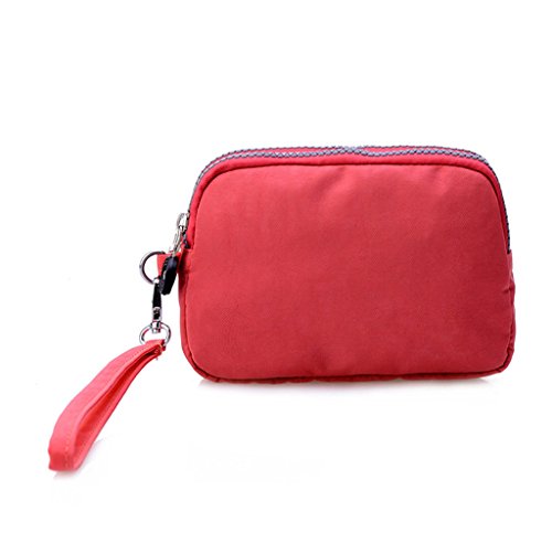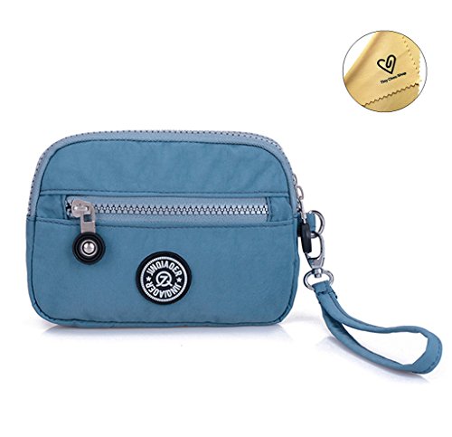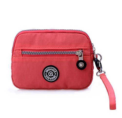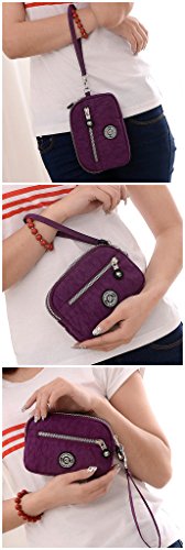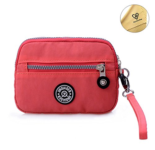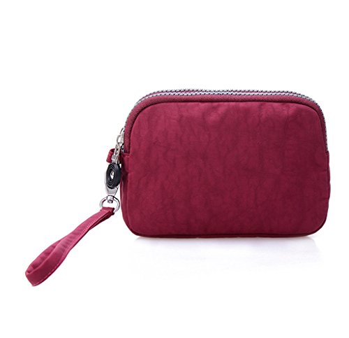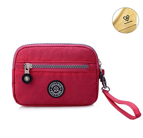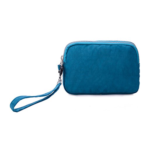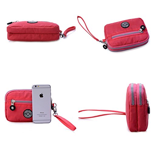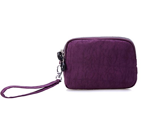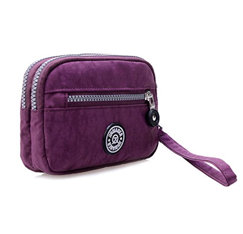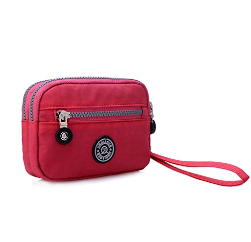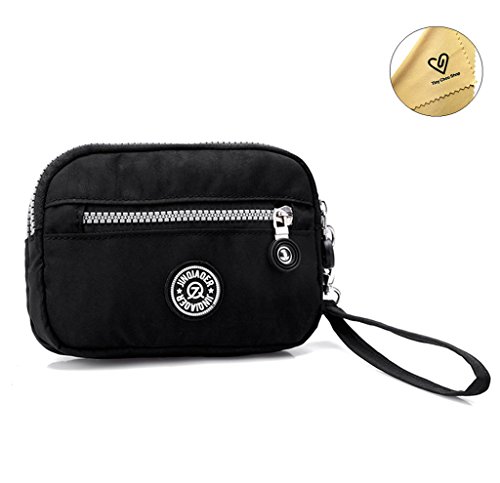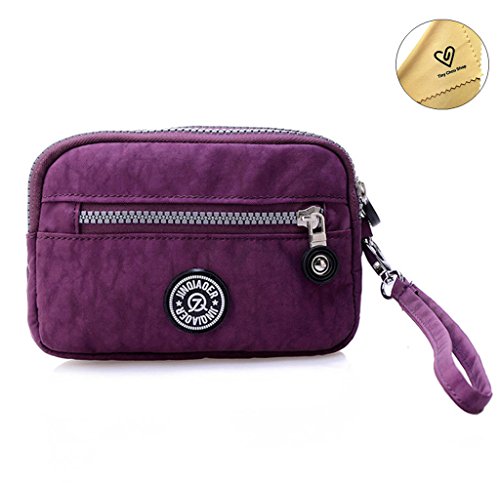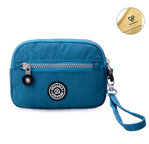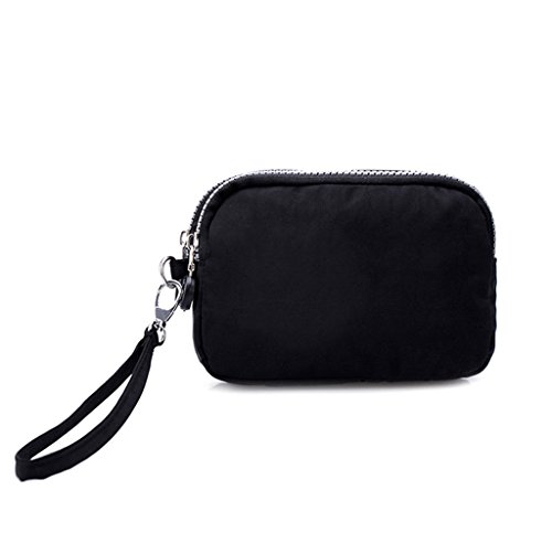 | Tiny Chou Dual Layers Zipper Purse Waterproof Nylon Wristlet Bag Clutch Handbag Cell Phone Pouch |