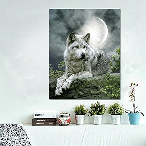 Fipart DIY diamond painting cross stitch craft kit. Wall stickers for living room decoration. Wolf(12X18inch/30X45CM)