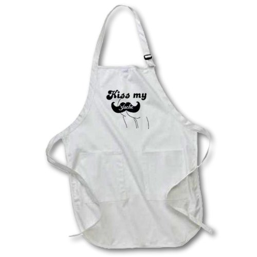3dRose apr_76619_4 Funny Kiss My Stache Mustache Humor-Black and White Moustache-Full Length Apron, 22 by 30-Inch, Black