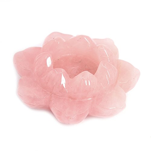 Carved Rose Quartz Gemstone Lotus Flower Crystal Ball Stand