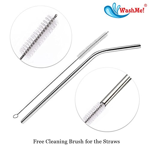 -. Feature : FLAUNT YOUR CLASSY TASTE WITH THE ELEGANT STRAWS --- The elegant set of stainless steel straws by WashMe is ideal for sipping your refreshing cocktail or a hot aromatic coffee. With their sleek and modern design, WashMe Steel straws compliment all your classy kitchenware. Treat your guests with these straws and flaunt your excellent taste. / ECO-FRIENDLY, BPA FREE, PLASTIC FREE, REUSABLE STAINLESS STEEL STRAW --- WashMe Stainless Steel Straw set contains 4 non-disposable drinking straws and 1 cleaning brush for them. The set is made of high-grade 18/8 stainless steel. This reusable drinking straw does NOT contribute to the plastic waste problems. It even spares you from consuming the toxic additives found in disposable plastic straws. / ULTRA DURABLE, RUST-PROOF, SCRATCH-PROOF --- Since WashMe Stainless Steel straws are made of heavy-duty steel, they are food safe, corrosion- and scratch-resistant. Unlike plastic straws, you won't be able to twist or chew after use. They retain their shape even after repeated use. The Stainless Steel Straw set will rust neither in your dishwasher nor in your drinks and wouldn't also break. One straw set will last for years altogether. / EASY TO CLEAN AND DISHWASHER SAFE --- The cleaning of the mirror-finish straws is a breeze. Simply put these steel straws in the dishwasher and you are done. If you find any bits stuck inside, use the FREE cleaning brush which makes it very convenient to clean the nook and crannies of the straw. Just clean the inside with the brush and put them in the dishwasher post use. / FITS ALL BOTTLE AND GLASS SIZES --- The stainless steel drinking straw is 8 inch long. With such a size, it easily fits bottles, and both short and tall glasses. They are angled at such position which makes it easier to sip.