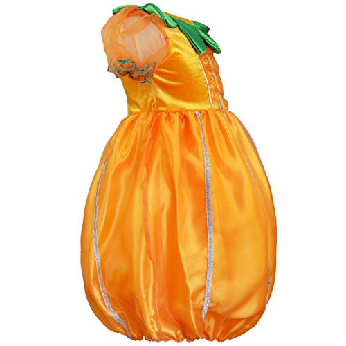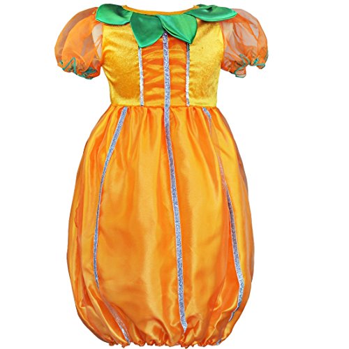 -. Brand : YiZYiF -. Department : baby-girls -. Feature : Set Include: 1pc Dress / Round neckline with leaves around the neck, short mesh sleeves with elastic ruffle cuffs / Top front with pleated mesh and sequined strips detailings / 1 layer skirt features pumpkin, shiny strips on top attached mesh, elastic leg openings / For party, pageant, Halloween,Christmas or other special occasions -. ProductGroup : Apparel -. ProductTypeName : BABY_COSTUME -. Title : YiZYiF Baby Girls Boutique Pumpkin Fairy Dress Halloween Christmas Fancy Costume