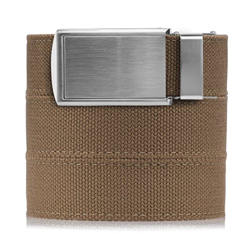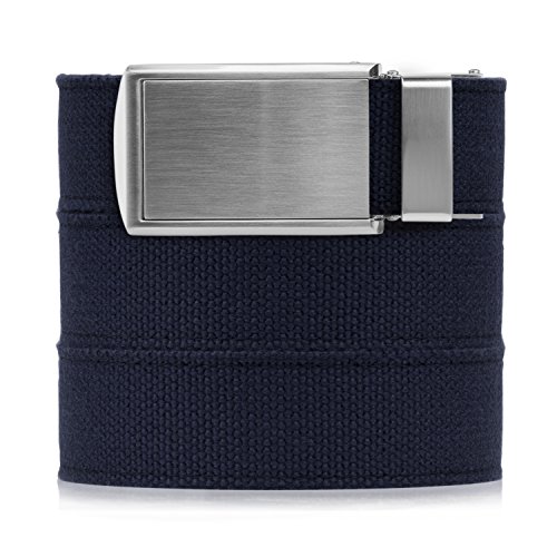 Love our no-holes belts but looking for something a little more casual than leather? Say hello to our new line of canvas belts, now with a selection of subdued, solid-color straps. Perfect for a more "dressed down" look. As with our leather belts, a row of notches sewn to the underside of the canvas straps eliminate the need for traditional belt holes. This mechanism allows for over 30 size options at 1/4" intervals, which means no more awkward "in-between" sizes with only five belt holes. Our new straps are entirely compatible with any of our existing buckles, so feel free to mix and match with any SlideBelts buckle(s) you may already own. Each strap comes full length at 55 inches (fits approximately a 48" waist size), and can be quickly and easily cut down to your particular size.Feature