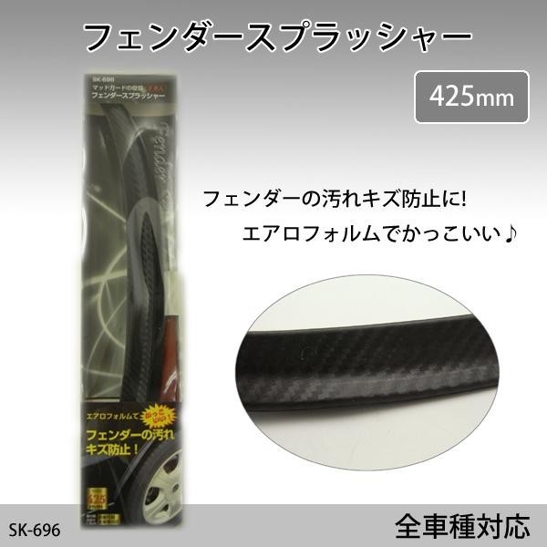 フェンダーの汚れキズ防止に! 製造国:中国 素材・材質:軟質PVC 商品サイズ:425mm 仕様:取付時の厚さ:1.5cm折曲可能全車種対応パッケージ裏面に取扱説明の記載有り 付属品:固定ネジ6本 ※サプライヤー直送品 ご注文後7~8営業日後の出荷となります【商品名】フェンダースプラッシャー425mm SK-696