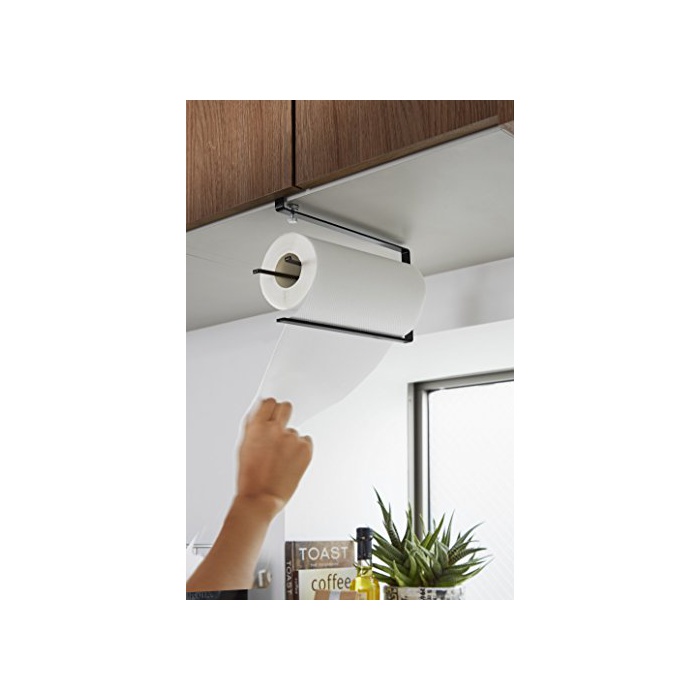 야마자키 실업 키친 페이퍼 홀더 한쪽 손으로 컷 찬장하 키친 페이퍼 홀더 타워 블랙 3296