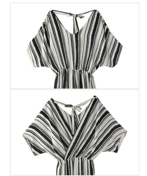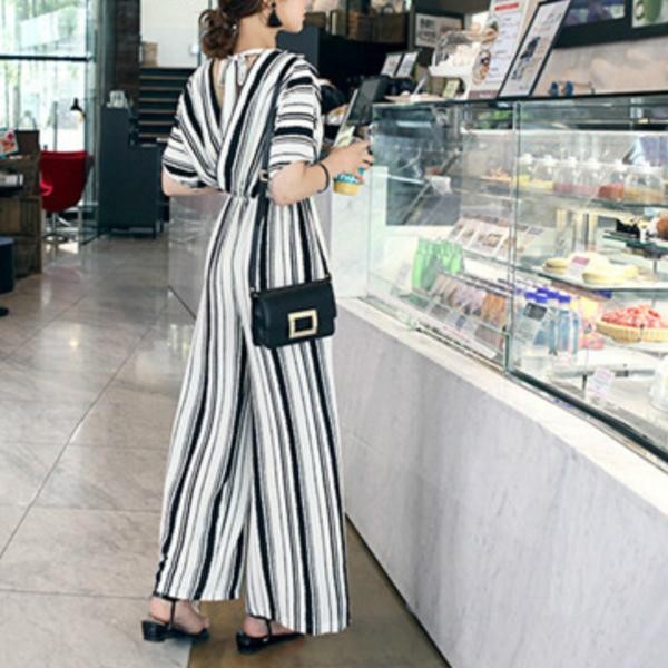 商品詳細カジュアル ストライプ柄 Vネック ジャンプスーツ オールインワンサイズ展開は:FREEになります。 採寸は下記通りです、ご参考ください。 ※実寸を記載しておりますので、お手持ちのお洋服と 比較いただけると、サイズ選びの目安になります。※着丈の参考に ⇒ 身長別着丈ガイド! 【サイズ(cm)】 着丈 :107.0cm 胸囲 :94.0cm ウエスト:58.0cm ヒップ :104.0cm 【カラー】 ブラック 【素材】 RAYON 35%, POLY 65%