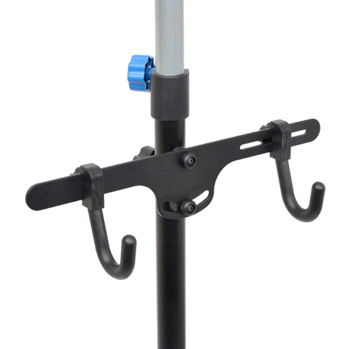 ●ポールの高さ調節、フックが付いたプレートの細かな位置と角度調節が可能。