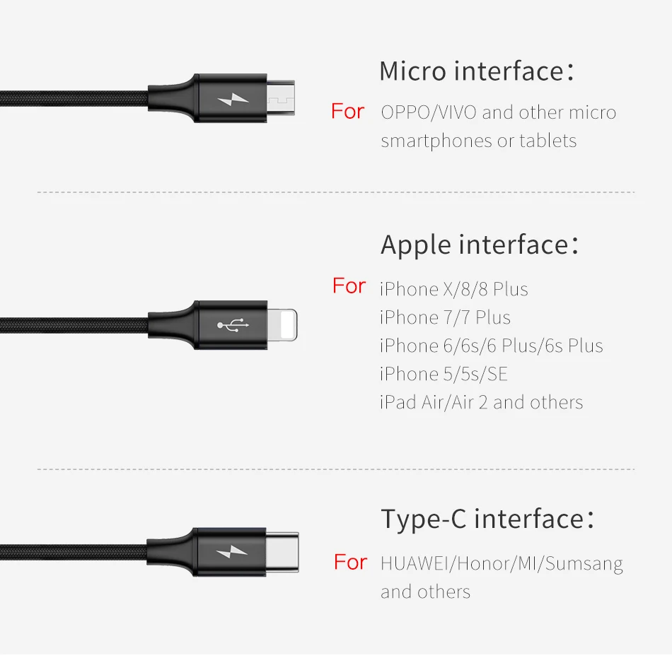 Style:3 in 1 USB Charging Cable