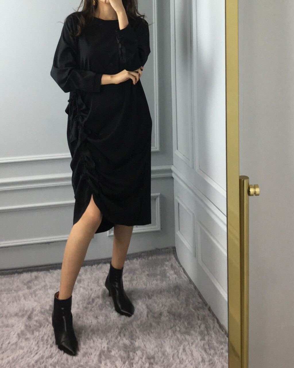 사이드쪽에 주름진 셔링 디테일이