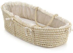 Natural Moses Basket with Beige Gingham Bedding by Badger Basket by Badger Basket