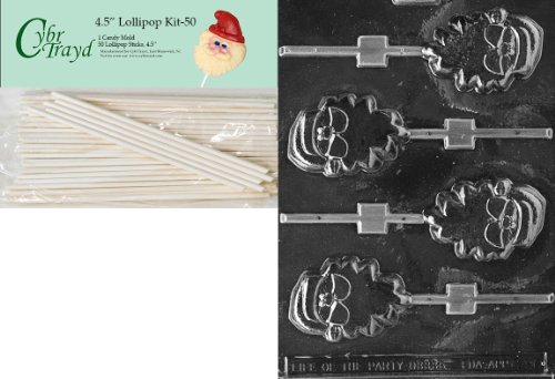 Cybrtrayd 00045St50-C090 Silly Santa Lolly Christmas Chocolate/Candy Mold with 50 4.5-Inch Lollipop Sticks