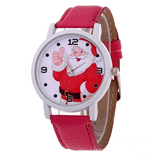 -. Title : LinTimes Artificial Leather Christmas Father Santa Claus Quartz Wrist Watch for Women Kids Boys Girls Red