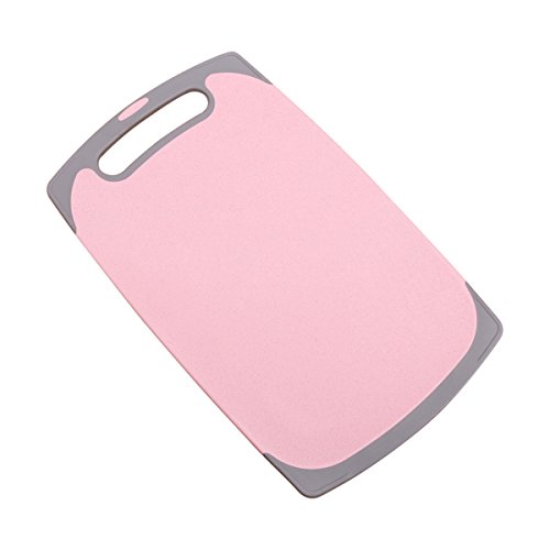 UPSTYLE Large Size Wheat Straw Plastic Anti-mildew Cutting Board with Handle Skid Resistance Kitchen Chopping Block Rectangle Cutting Mat for Meat,Vegetables, Serve Bread, Pink