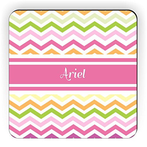 Rikki Knight "Ariel" Pink Chevron Name Design Square Fridge Magnet