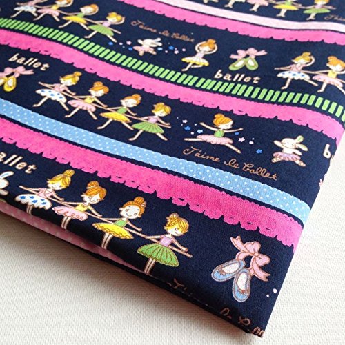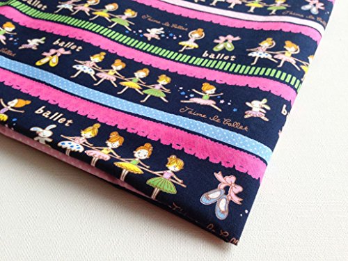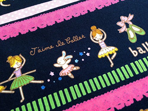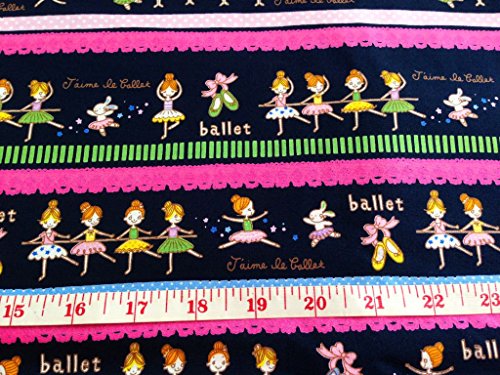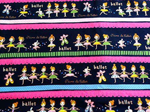 Np Fabric Kids Pink ballerina fabric by the yard on Dark Blue Fabric 36 by 36-Inch Wide (1 Yard) (CT085)