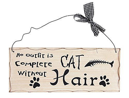 Attraction Design No Outfit is Complete without Cat Hair Wood Folk Wisdom Plaque, Cream