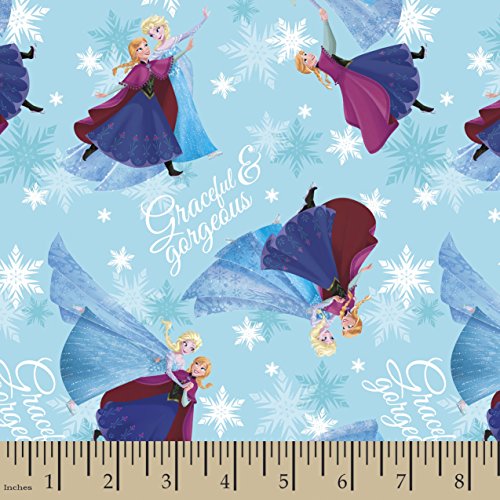 Springs Creative Products Group Disney Frozen Sisters Skating Bridal Satin Fabric, 57 by 58-Inch Wide, Blue