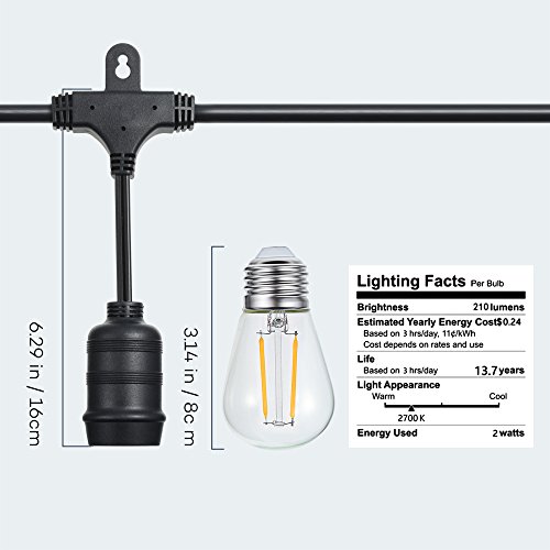 TaoTronics LED Outdoor String Lights, 50 ft Commercial Grade Outdoor Christmas Lights, 16 x S14 2W Patented Led Bulbs, ETL Approved Weatherproof Strand for Patio Garden Gate Yard, 110V, US Plug