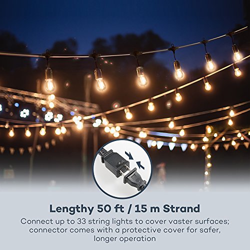 - Lengthy 50 ft / 15 m Strand: Connect up to 33 string lights to cover vaster surfaces; connector comes with a protective cover for safer, longer operation