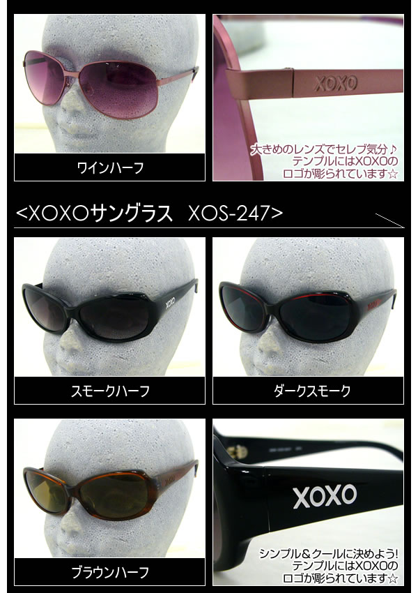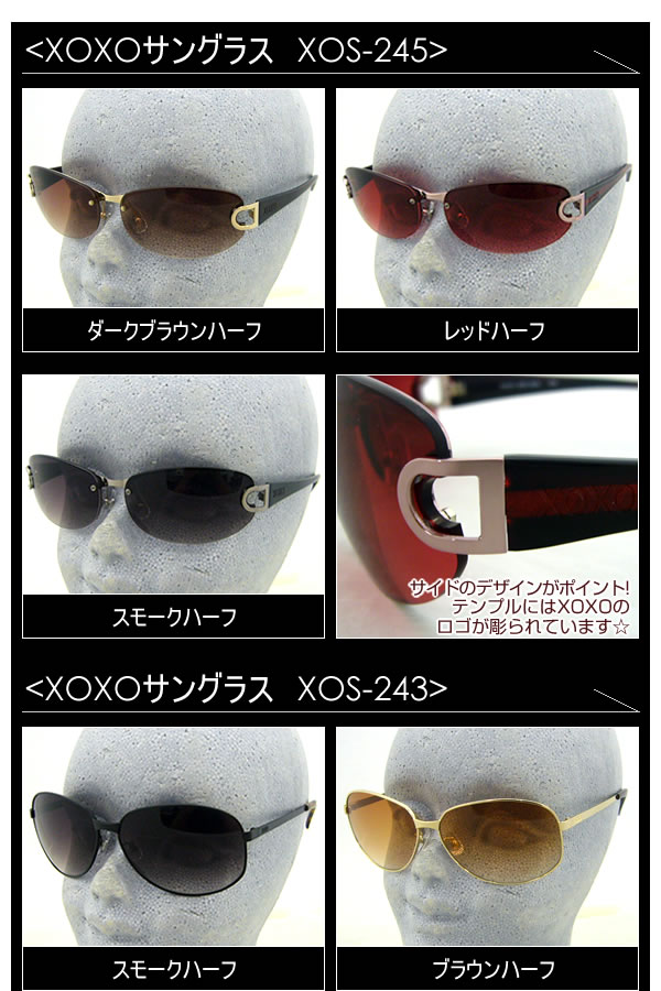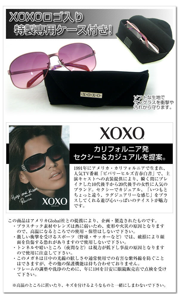 カリフォルニア発の大人気ガールズブランド「XOXO」のサングラスでちょっとラグジュアリーなあなたに☆ファッションのアクセントとして使うとGOOD!ロゴ入り専用ケースも付いてます♪ ※サプライヤー直送品  ご注文後、当日~1営業日後の出荷となります【商品名】XOXOサングラス XOS-243 ブラウンハーフ