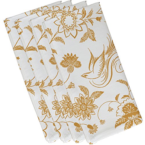 E by design Traditional Bird Floral, Floral Print Napkin, 19 x 19", Gold
