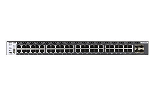 The M4300-52G-PoE+ provides 48 Gigabit PoE+ ports with 2 10GBASE-T and 2 10GBASE-X SFP+ uplinks all independent and 1G backward compatible