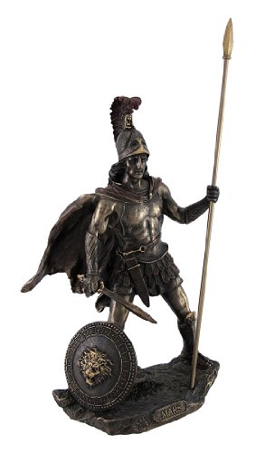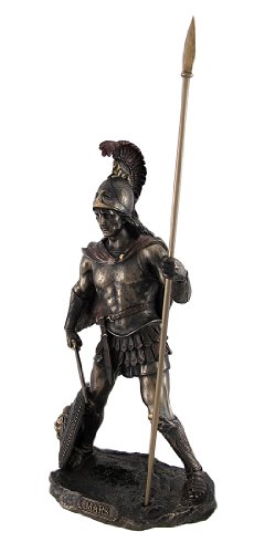 Bronzed Mars Roman God of War Statue with Colored Accents
