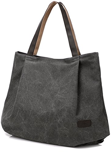 -. Title : Qyoubi Women's Canvas Pleated Shoulder Bag Big Shopping Tote Casual Work Travel Bag