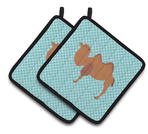 Caroline's Treasures BB7992PTHD Bactrian Camel Blue Check Decorated Pot Holder, 7.5" x 7.5", Multicolor