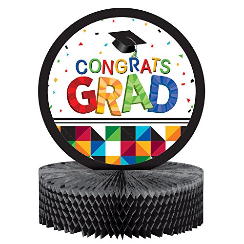 -. Feature : GRADUATION PARTY SUPPLIES SET FOR 16: Plates, Napkins, Cups, Forks, Spoons / GRADUATION PARTY DECORATIONS KIT: Card box, Centerpiece, Banner / CONGRATS GRAD THEME: Multi Colored with Blue, Yellow, Black and more / Perfect for decorating and serving cake and punch at the party / Make this graduation party a memorable one!