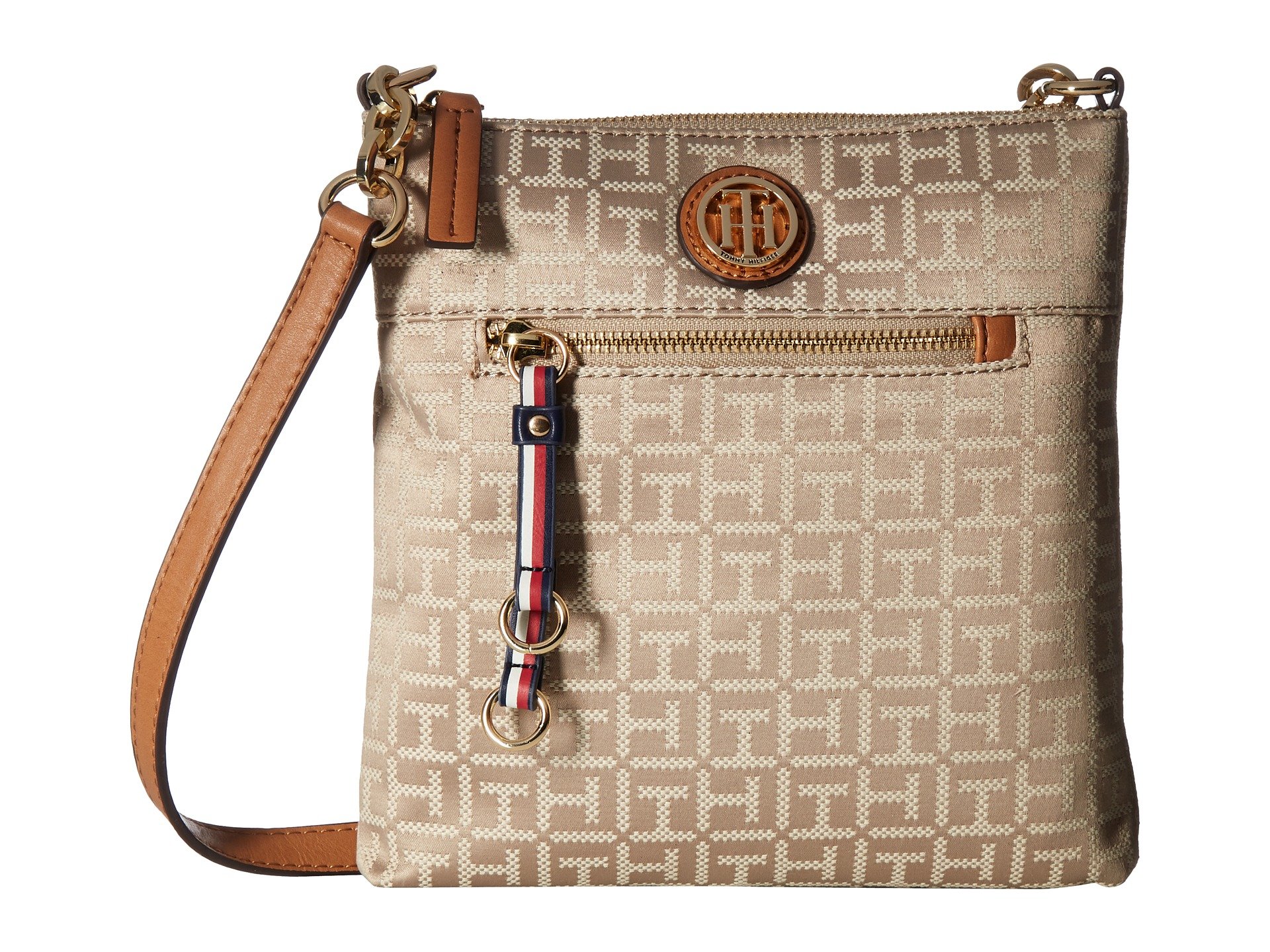 | Product Information SKU: #8950118Wherever the day takes you, do it in style with this chic handbag.Made of signature brand jacquard with faux-leather trim.Crossbody strap with chain detail. Exterior features a zip pocket and brand medallion at the front.Lined interior features one zip and one slip pocket. Imported.This product may have a manufacturer's warranty. Please visit the manufacturer's website or contact us at warranty@support.zappos.com for full manufacturer warranty details.Measurements: Bottom Width: 8 in Depth: 1 in Height: 8 1?2 in Strap Length: 48 in Strap Drop: 23 in Weight: 10.6 oz |