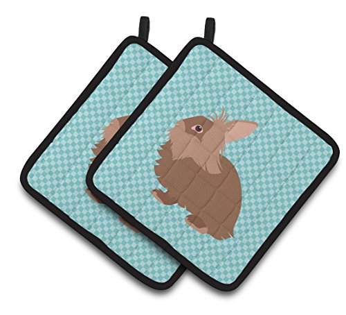 Caroline's Treasures BB8134PTHD Lionhead Rabbit Blue Check Decorated Pot Holder, 7.5" x 7.5", Multicolor