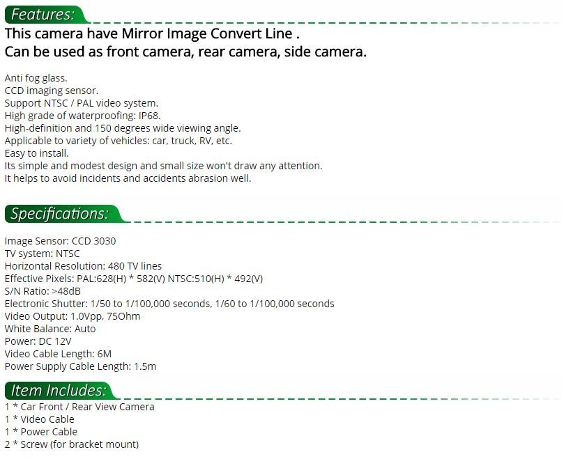 +++ 전방 후방 사이드 겸용 CCD 카메라  +++