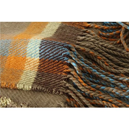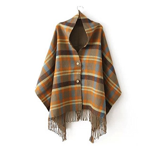 Title : Women's Vintage Cozy Tartan Knitted Scarf Wrap Shawl Neck Stole Warm Plaid Tassel Poncho Checked Pashmina Cape Button Cardigan (1)