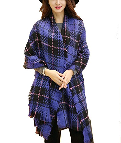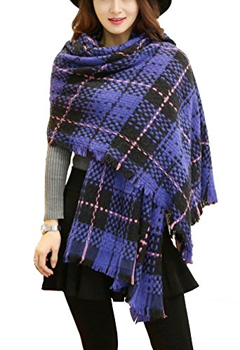 Title : Urban CoCo Women's Double Sided Plaid Woven Scarf Blanket Shawl Wrap Poncho with Fringe Trims (purple)